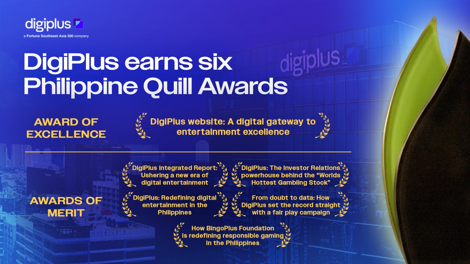DigiPlus also earned five Merit Awards across multiple categories including investor relations, customer relations, audio/visual, publications, and marketing, advertising, and brand communication.