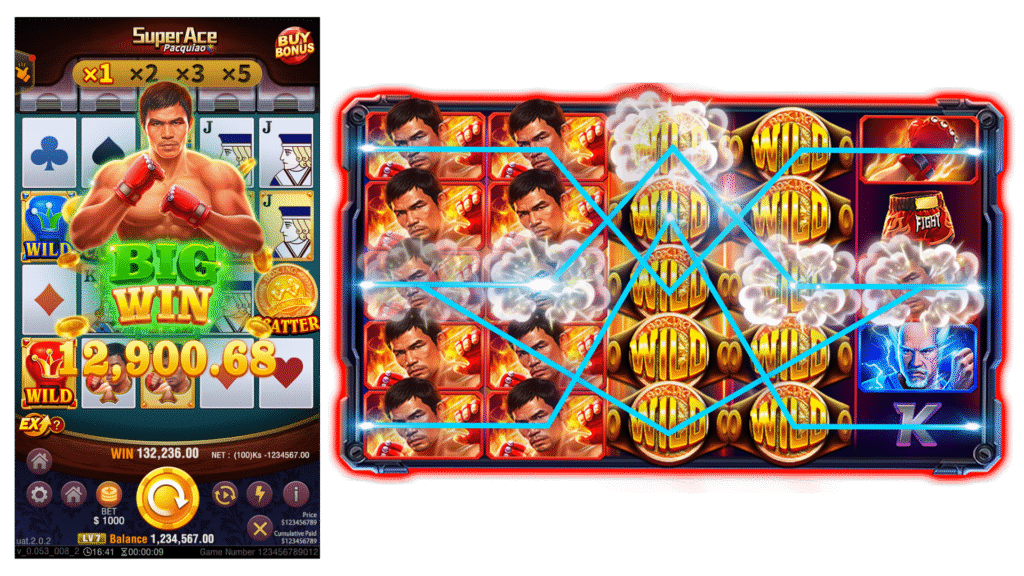 “Super Ace Pacquiao” sets the tone with 1,024 ways to win and payouts that can reach up to 10,000x, which mirrors the kind of boldness that led “The Pacman” to dominating eight divisions—a feat that continues to be unmatched to this day.
